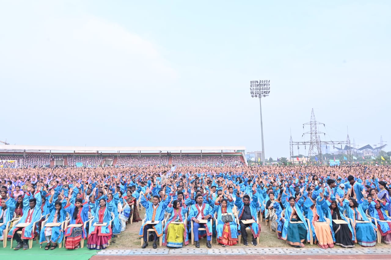 Bhubaneswar, Nov 30: The 5th Annual Convocation of the Kalinga Institute of Social Sciences (KISS) began with the conferment of degrees upon the graduating students of KISS Deemed to be University. A total of 464 degrees were awarded, including 444 postgraduate degrees and 20 doctoral degrees. One student received the Founder’s Gold Medal for overall excellence, while seven were honoured with the Chancellor’s Gold Medal and another seven with the Vice Chancellor’s Silver Medal.